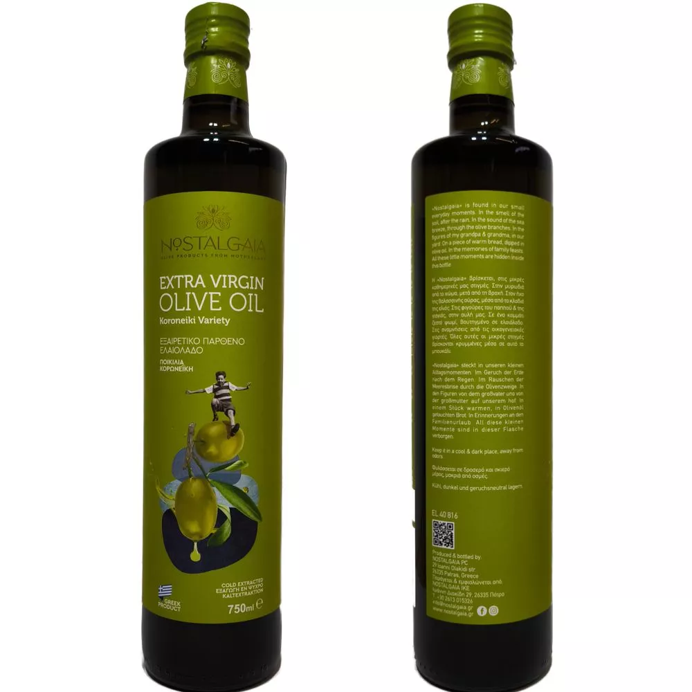 750 ml Nostalgia – Kaltgepresstes natives Olivenöl Extra vom Peloponnes, Koroneiki Olive (Säure unter 0,3%)