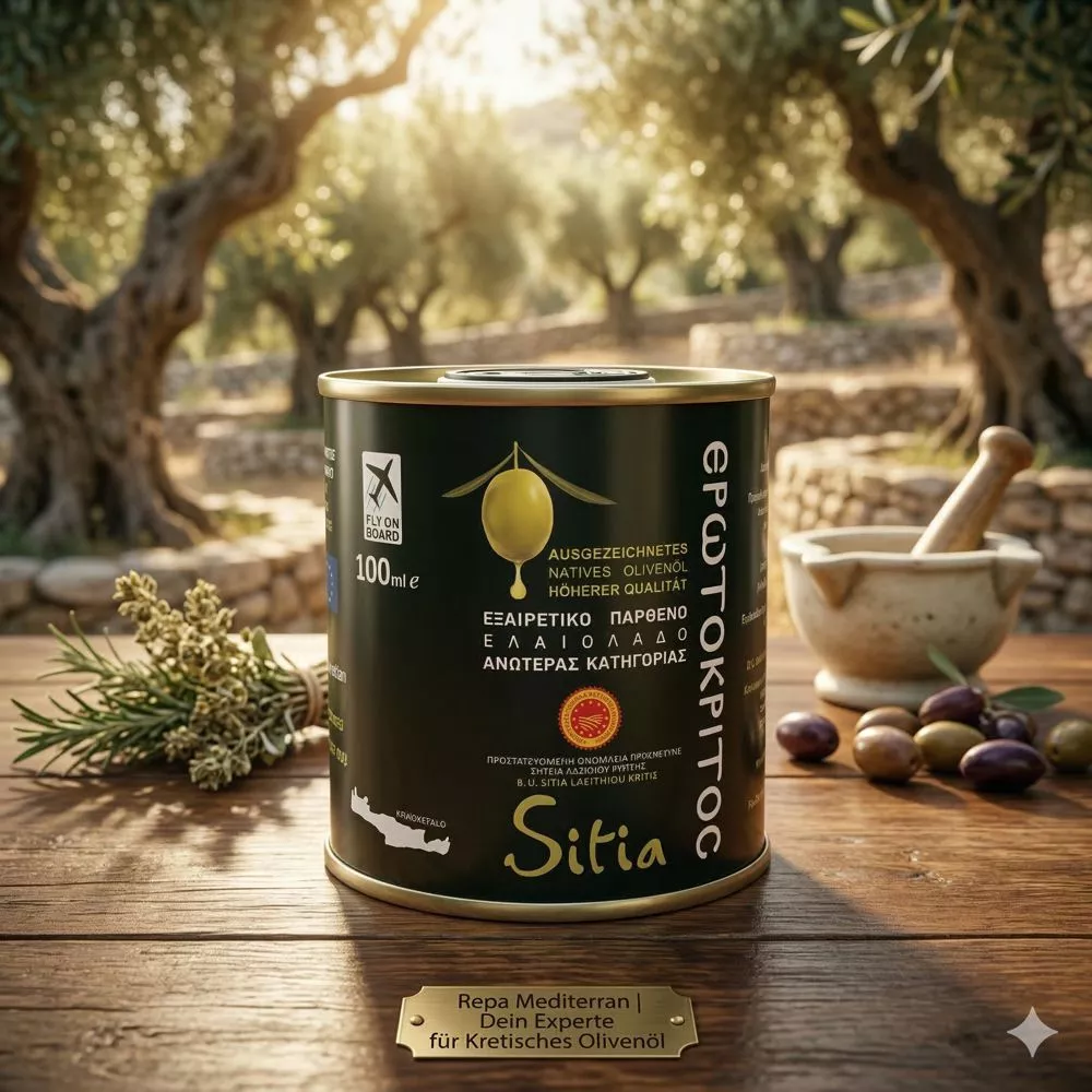 Griechisches klassisches Olivenöl von Erotokritoc, extra nativ und kaltgepresst von Kreta mit einem feinen Aroma und niedrigen Säuregehalt von 0,2 ...