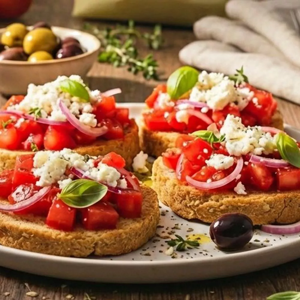 Für wen das Gericht geeignet istSportler: Durch den Gerstenzwieback liefert er komplexe Kohlenhydrate, während der Feta hochwertiges Protein beisteuert.