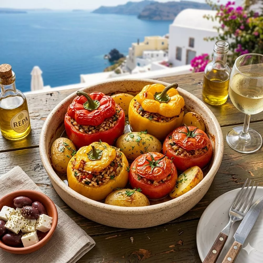 Ein kühler Assyrtiko (weißer Wein aus Santorin) passt mit seiner Säure perfekt zum Olivenöl. Alternativ ist ein trockener Rosé oder ein kühles Mineralwasser mit einem Spritzer Zitrone ideal.