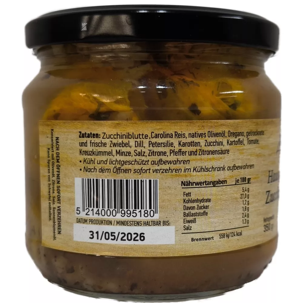 Following a cherished family tradition, each blossom is gently stuffed with a savory blend of rice, Mediterranean herbs, and premium Cretan olive oil.