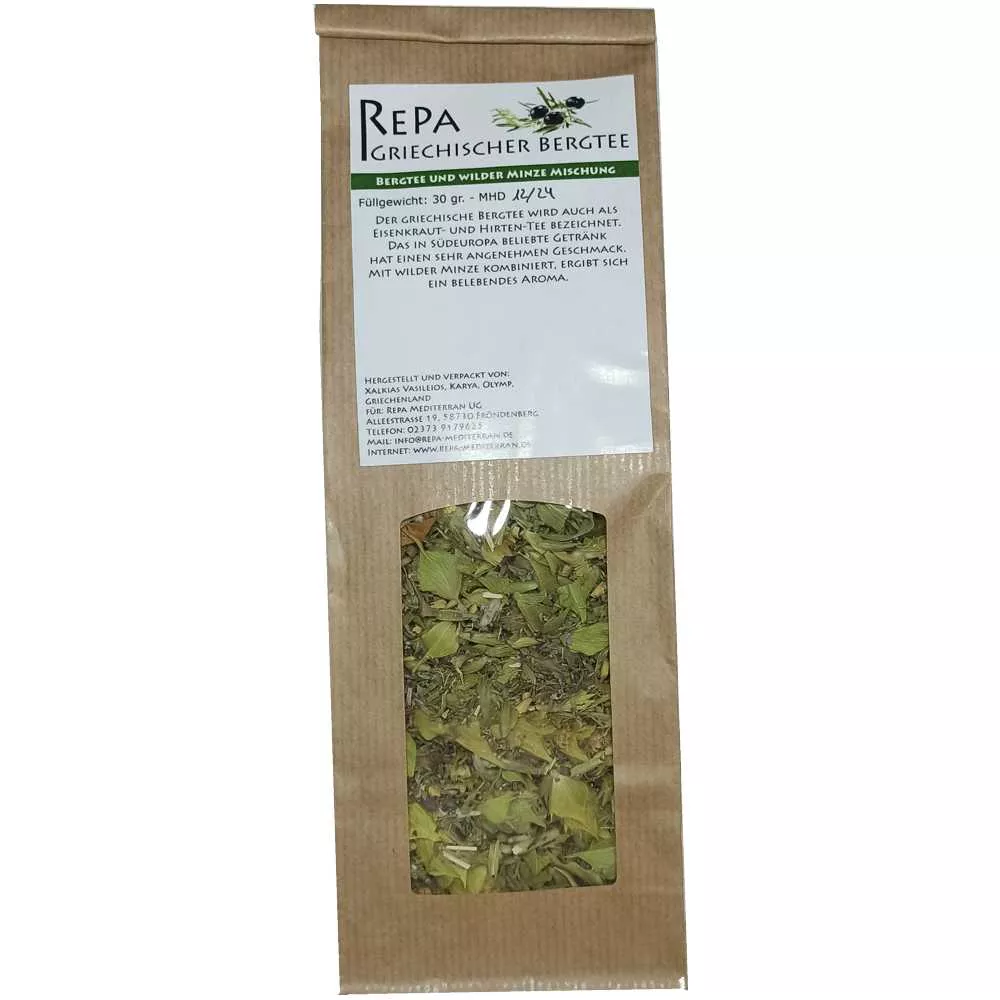 The Greek mountain tea is also known as verbena and shepherd's tea. The drink, popular in southern Europe, has a very pleasant taste. Combined with wild mint, the result is an invigorating aroma.